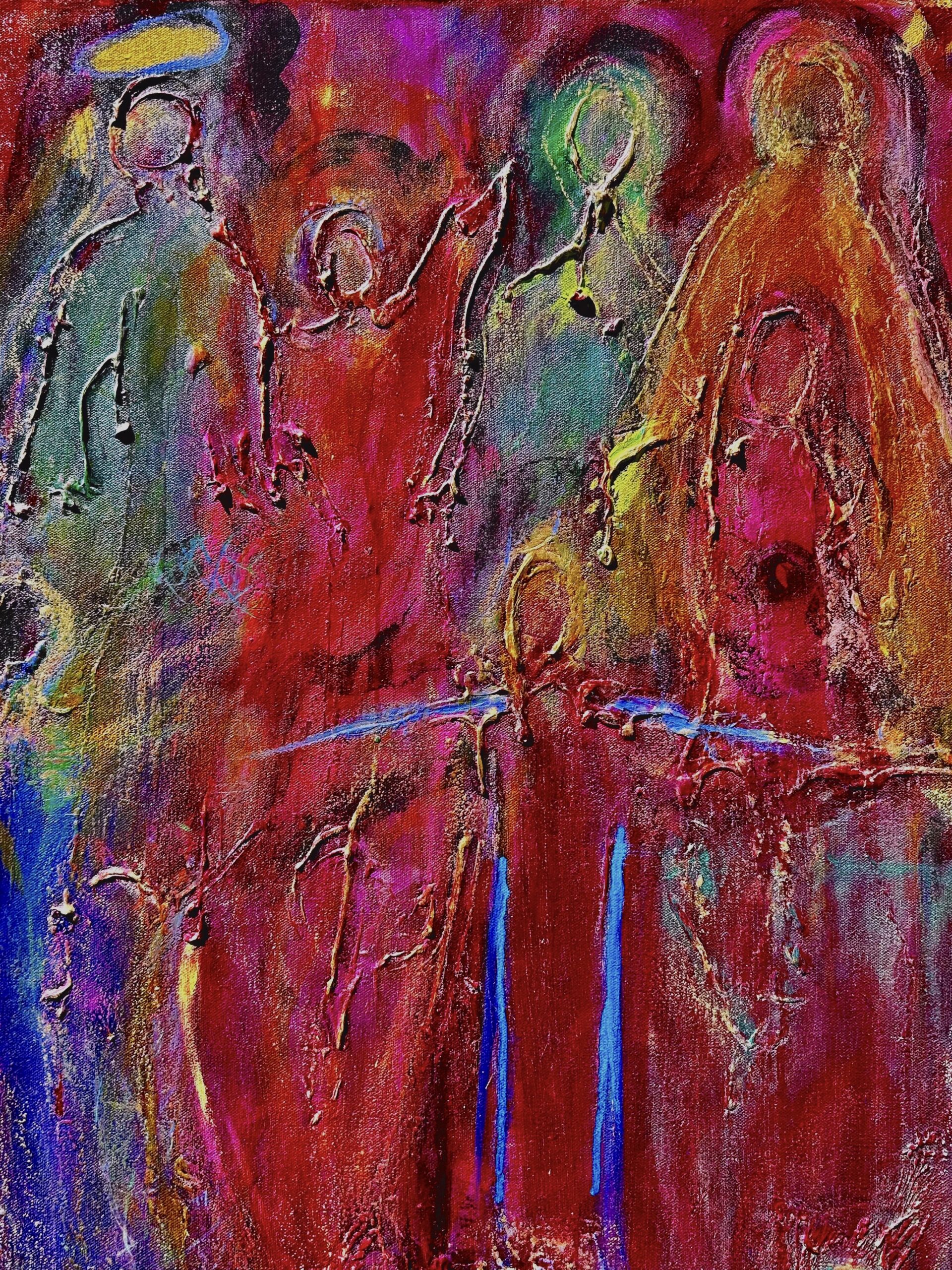 “They Come From Heaven” acrylic & mixed media on canvas, 30×24, $3,330